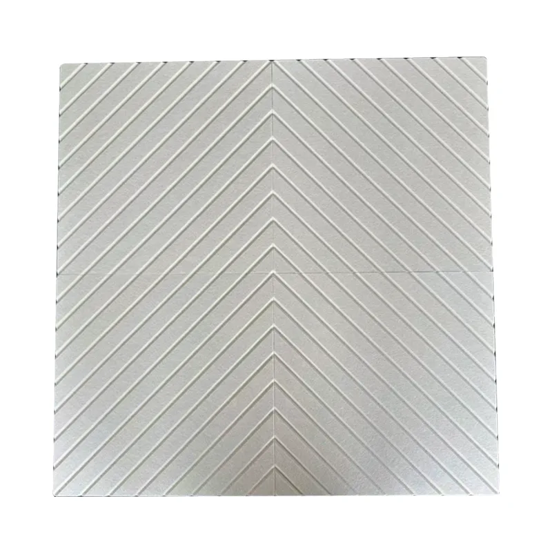 4. Enkel installasjon + bekymringsfri service: Beige V-rillede akustikkpaneler i PET-filt har en lett design som ikke krever noe komplisert verktøy for installasjon. Vi tilbyr grafiske og videoinstruksjoner, og vårt profesjonelle team tilbyr OEM/ODM-tjenester, og gir full støtte fra prøver til bulkforsendelser.